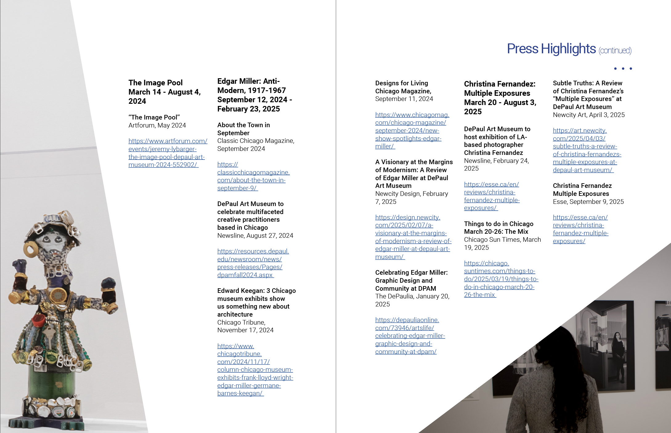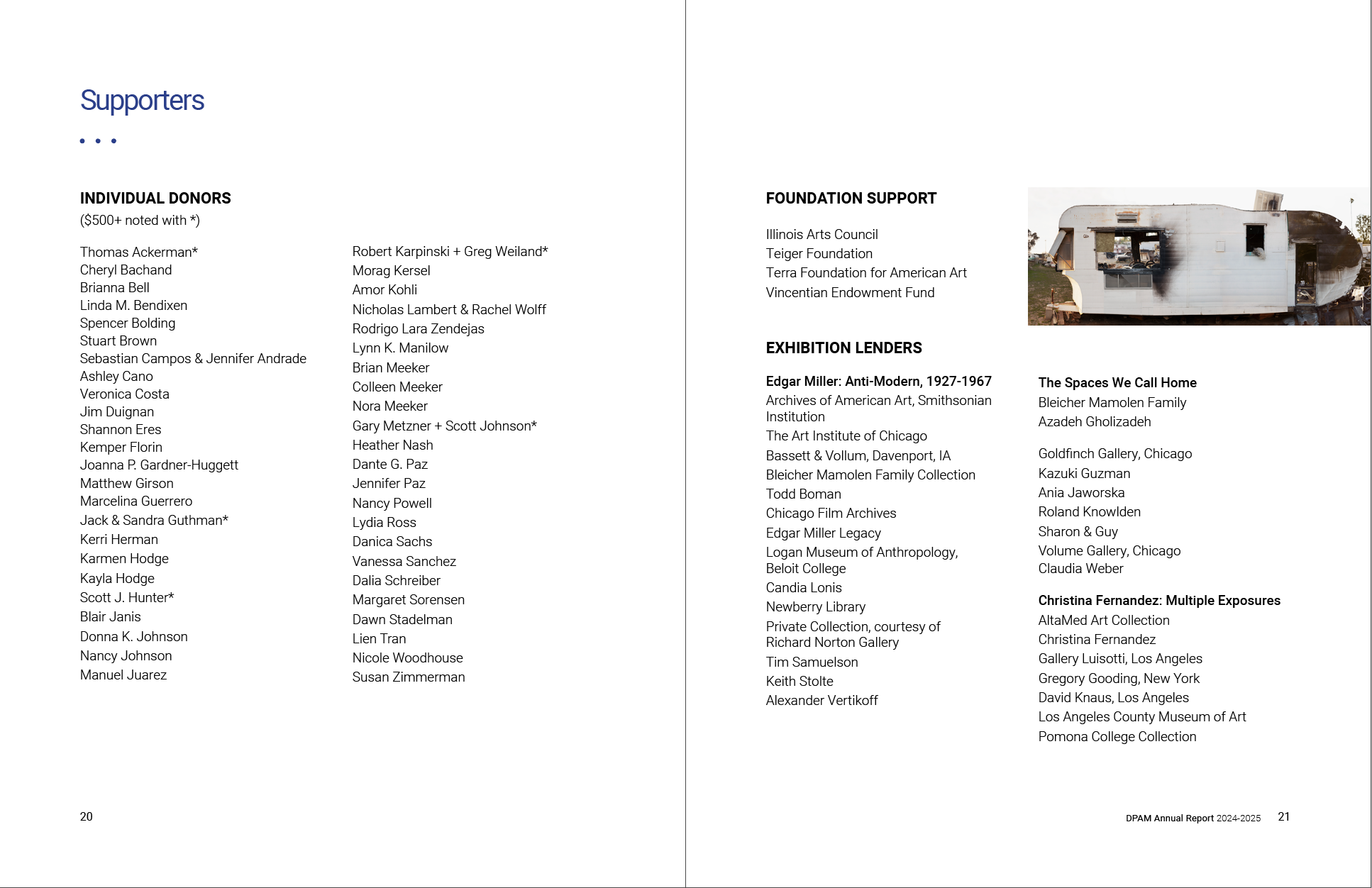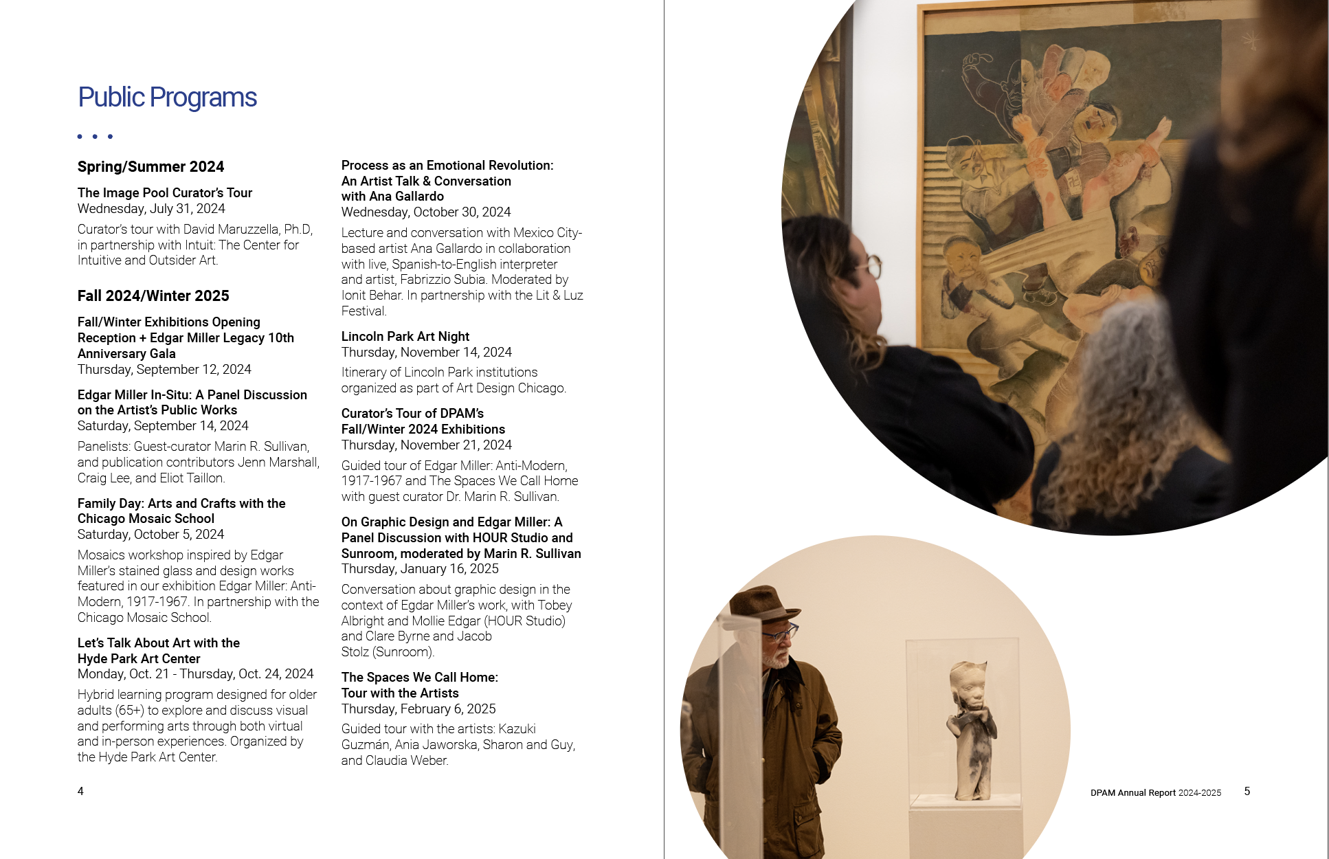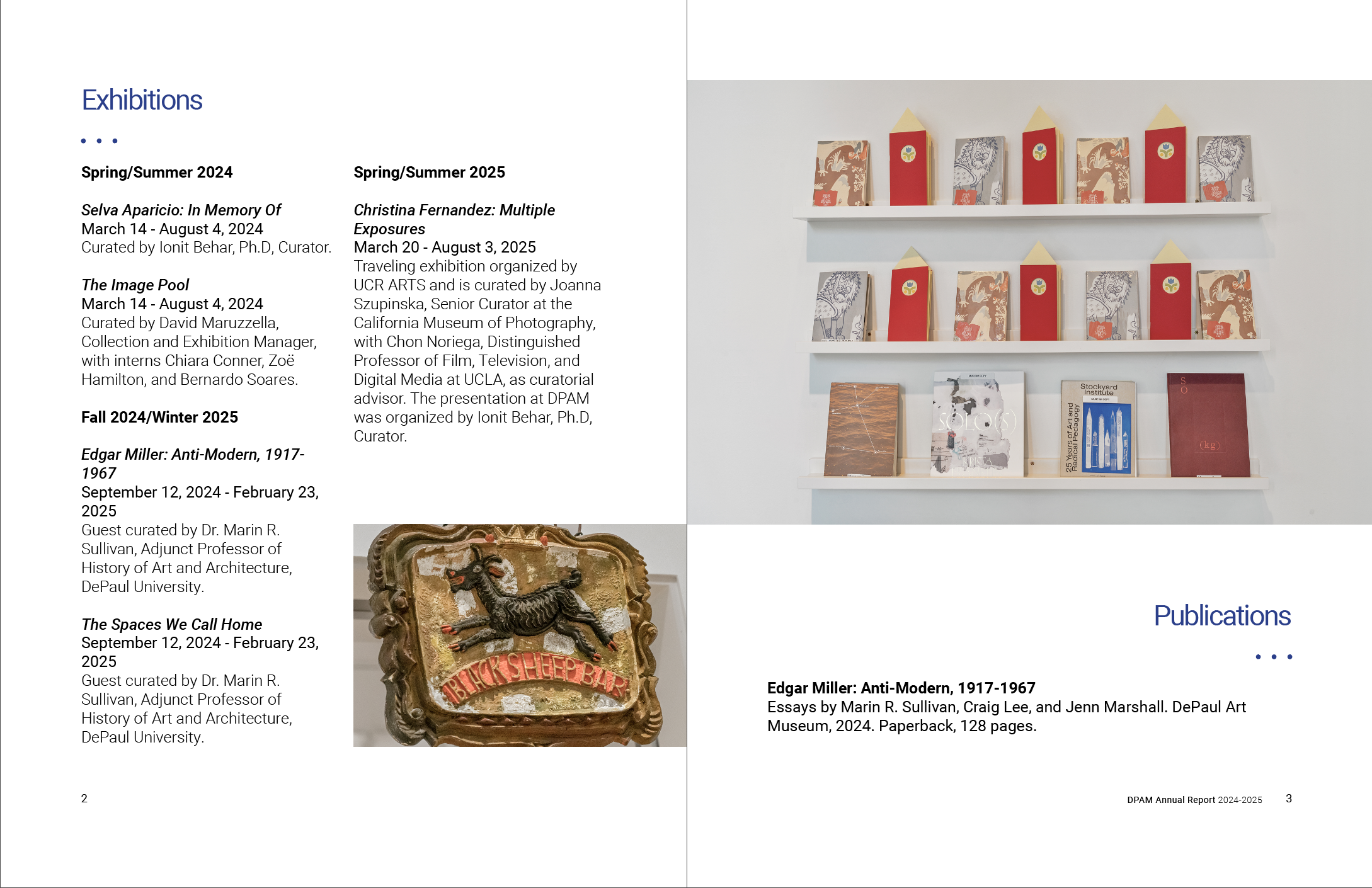 Using Adobe InDesign, I designed the layout for the museum’s 2024-2025 annual report. I selected images that related to the exhibitions, events, and acquisitions at the museum for the 2024-2025 fiscal year.